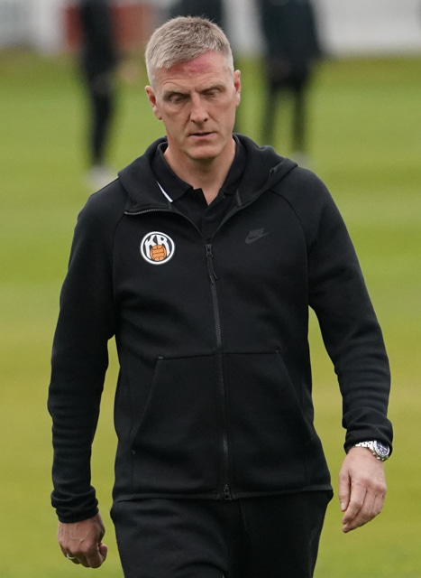 „Við erum að horfa upp á Gunnar Þór Gunnarsson vera klára ferilinn sinn hér vegna hnémeiðsla sem má rekja til gervigrassins hérna. Ég er ekki að álasa Vængjum Júpíters á neinn hátt heldur knattspyrnusambandinu. Það er óboðlegt að spila hér inni í 32-liða úrslitum á þessu gervigrasi. Annar leikmaðurinn minn á þessu ári sem eyðileggur á sér hnéð hérna."