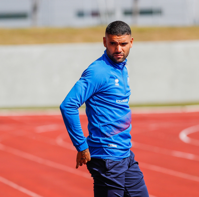 Jökull gerðist brotlegur og fékk gult spjald undir lok fyrri hálfleiks og kom annað mark Hamranna í kjölfarið af því.