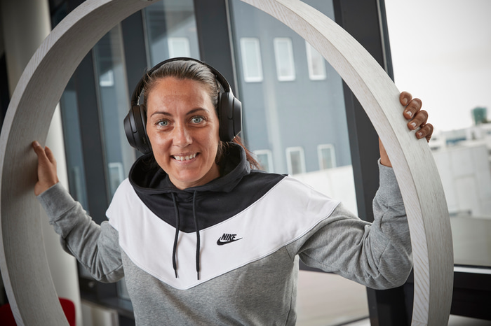 Hún fékk í verðlaun Sony bluetooth heyrnartól 1000XM3 með noise cancel frá Origo.