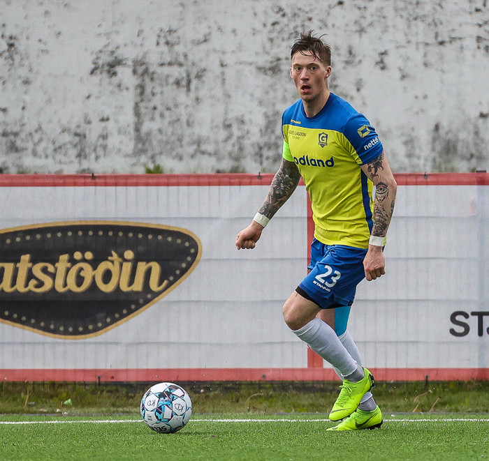Aron Jóhannsson, fyrirliði Grindavíkur, átti stórleik gegn KV í Lengjudeildinni í kvöld.