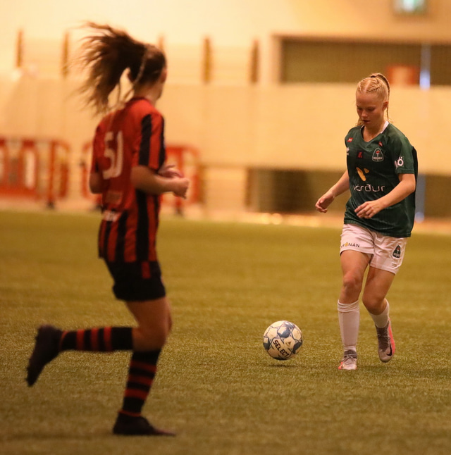 Breiðablik varð Íslandsmeistari í 4. flokki kvenna á sunnudag en liðið lagði Víking R. 1-0 í úrslitaleik í Fífunni. Kristján Gunnar Ríkharðsson tók þessar myndir þar.