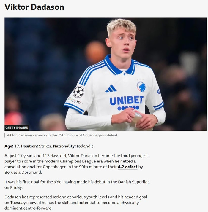 Ungir leikmenn voru svo sannarlega í sviðsljósinu í Meistaradeildinni þessa vikuna og einn af þeim er Íslendingurinn Viktor Bjarki Daðason sem skoraði fyrir FC Kaupmannahöfn gegn Dortmund.