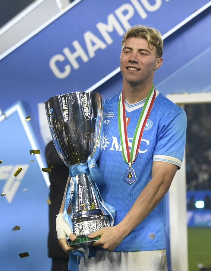 Danski framherjinn Rasmus Höjlund skaut léttu skoti á enska úrvalsdeildarfélagið Manchester United eftir að hafa unnið Ofurbikarinn með Napoli í gær.