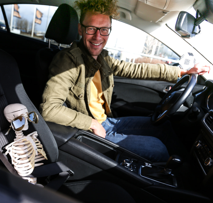 „Á endanum stal ég beinagrindinni af sjúkraþjálfaranum og ætlaði upphaflega að taka hana bara í einn dag. Beinagrindin missti hins vegar aðra hendina og ég gat ekki sett hana aftur á. Þess vegna þorði ég ekki að skila henni. Ég hélt henni heima hjá mér og hélt þessu áfram. Í rúmt ár var ég að taka upp eitthvað rugl af og til. Ég fékk fleiri og fleiri fylgjendur og það var random lið að adda mér á Snaphat til að fylgjast með Gissuri. Við brölluðum ýmislegt saman. Hann fór í búðina með mér og sat í kerrunni, við fórum saman á veitingastaði og meira segja á EM í handbolta. Hann var alveg brjálaður út í dómarana þar,“ segir Eyjólfur og hlær.