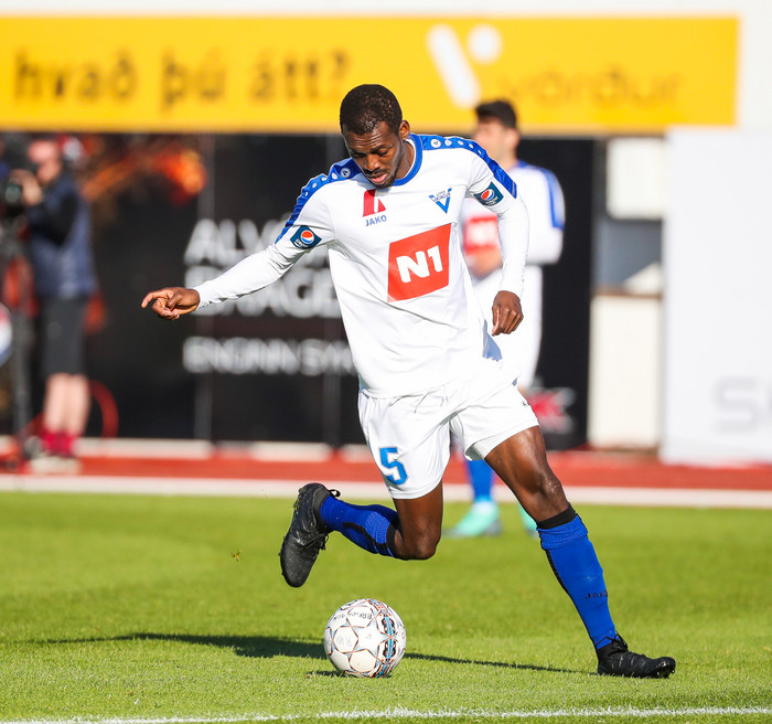 Emmanuel Eli Keke var fyrirliði Víkings Ó í dag þegar liðið slátraði Gullfálkanum í Mjólkurbikarnum.