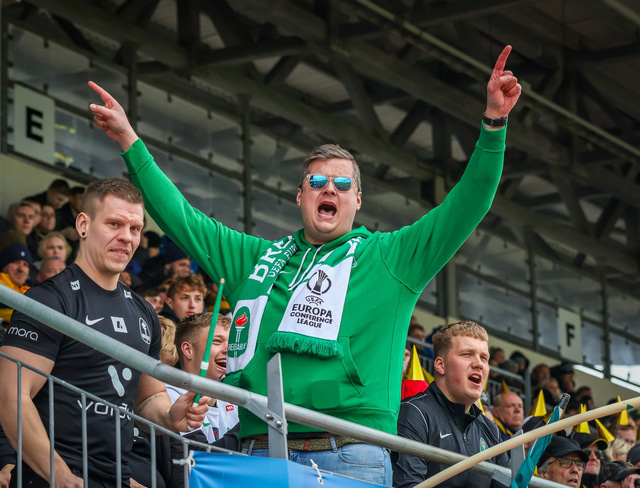 Stuðningsmenn Blika eignuðu sér brúsann og nýta hann í stúkunni á Kópavogsvelli.