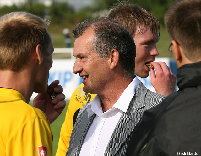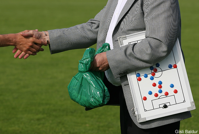 Guðjón Þórðarson, þjálfari Víkings í Ólafsvík, er þekktur fyrir nammipokann sem hann er vanur að hafa á varamannabekknum.