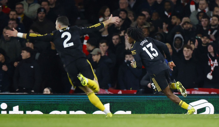 Heimamenn tóku forystuna í fyrri hálfleik þegar Lisandro Martínez tapaði líkamlegu baráttunni við Jurriën Timber og skoraði sjálfsmark eftir að Martin Ödegaard skaut boltanum í átt að marki.