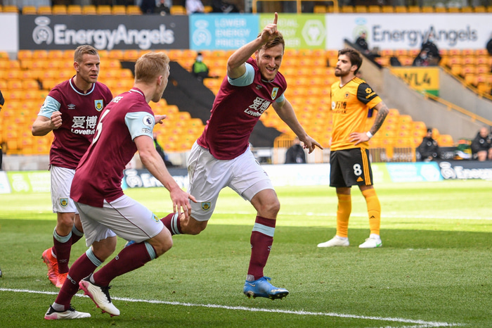 Burnley vann öruggan 0-4 útisigur gegn Úlfunum í dag. Chris Wood skoraði þrennu fyrir Burnley í fyrri hálfleik og ef það var einhver spurning um lokaniðurstöðuna þá skoraði Ashley Westwod fjórða mark Burnley skömmu fyrir leikslok.