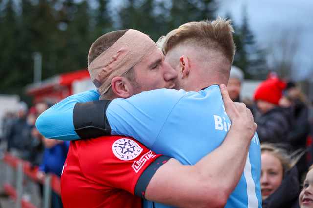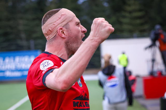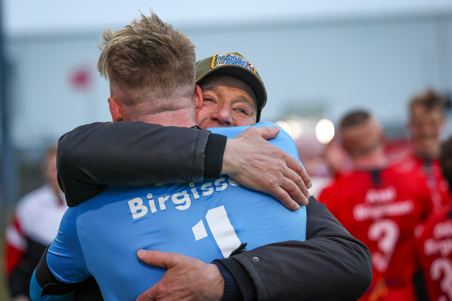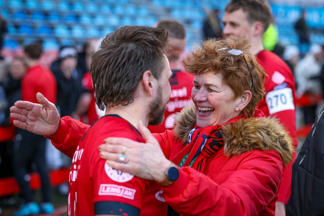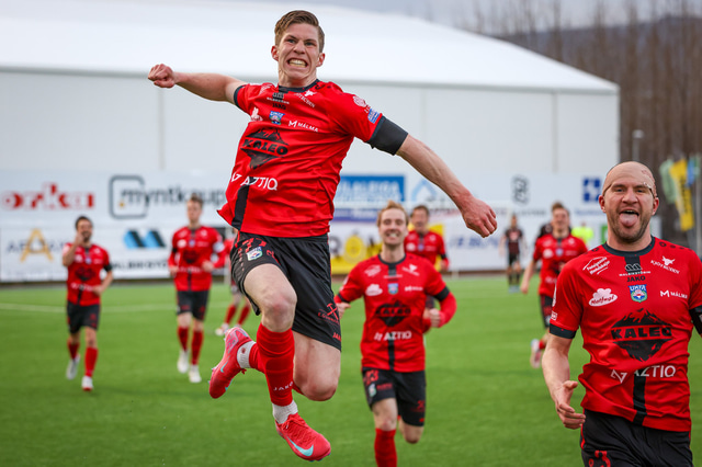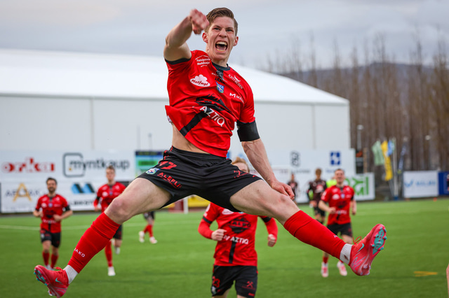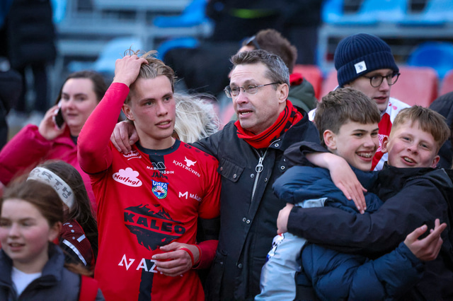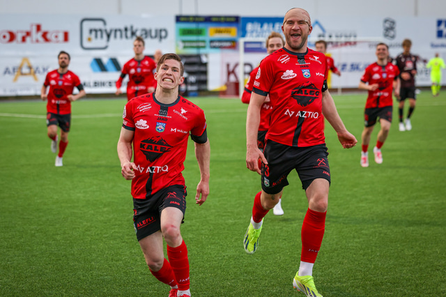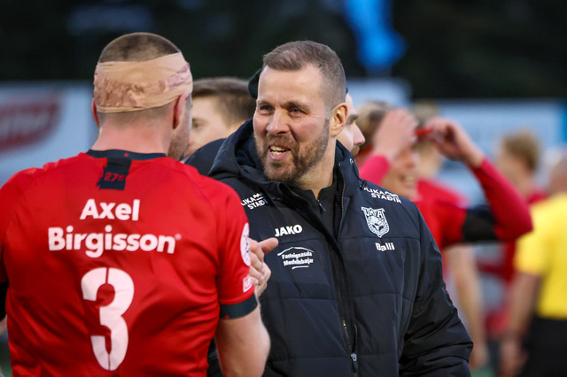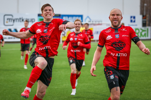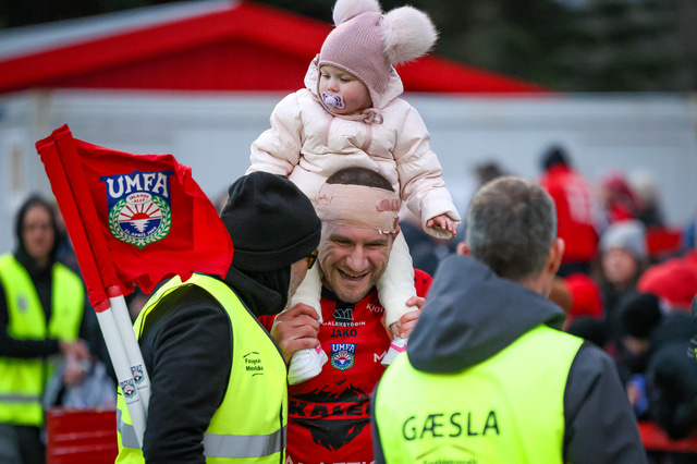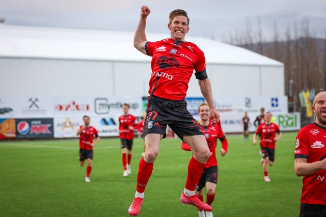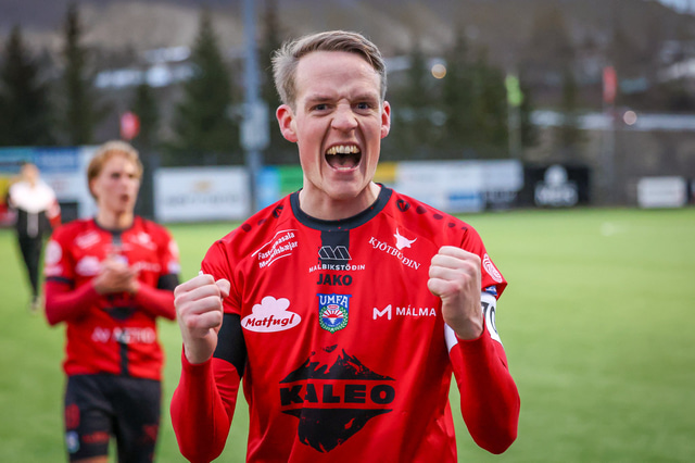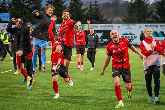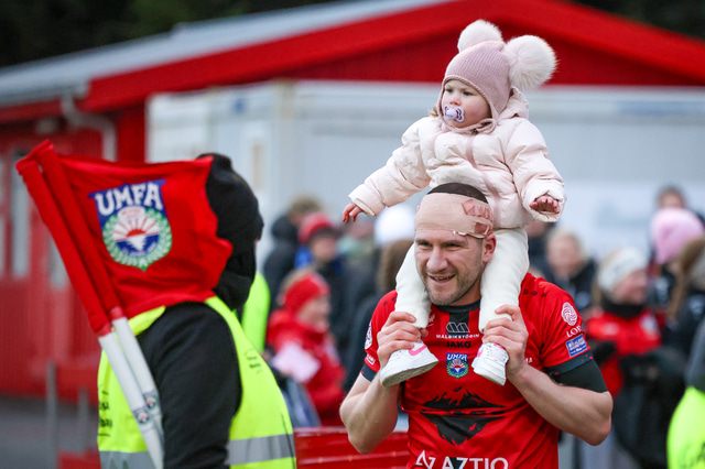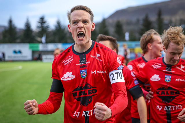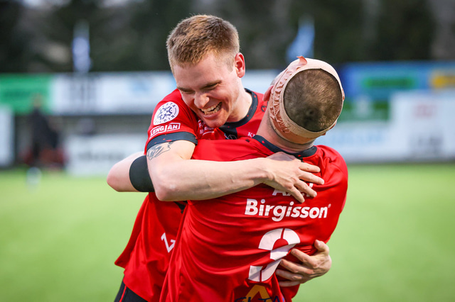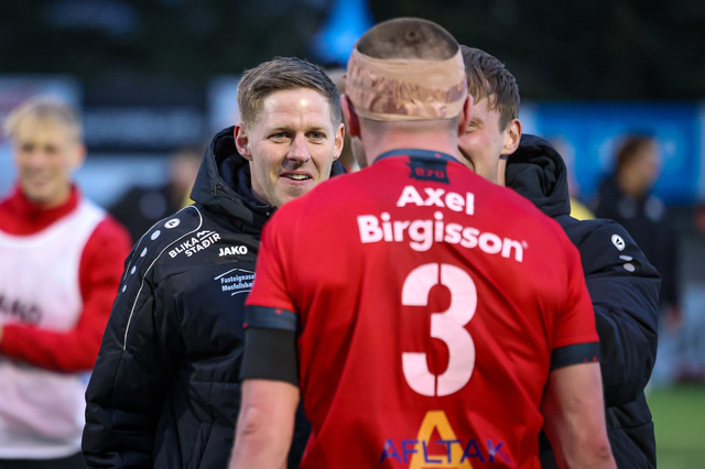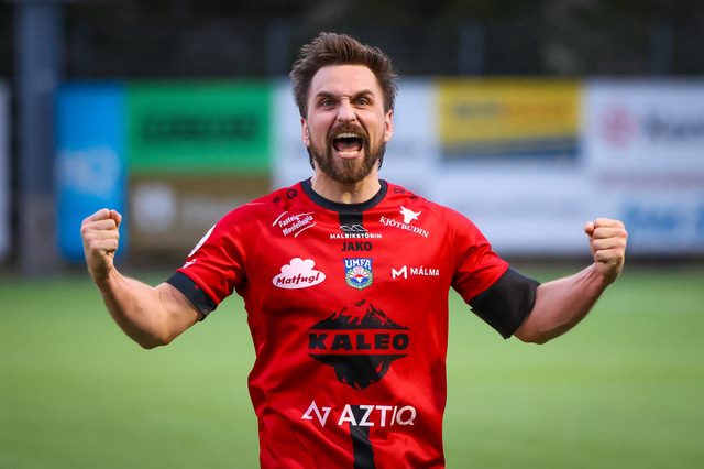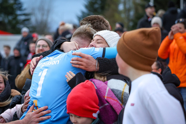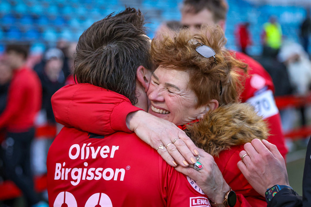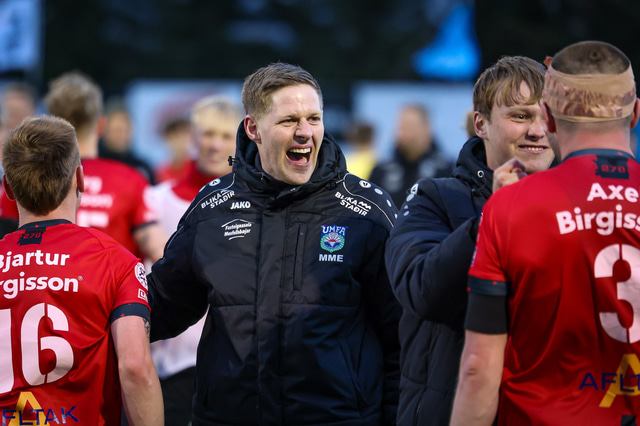 Hafliði Breiðfjörð var á vellinum og fangaði augnablikið eins og honum einum er lagið. Meðfylgjandi eru myndir af fagnaðarlátunum úr Mosfellsbæ frá því í gær.