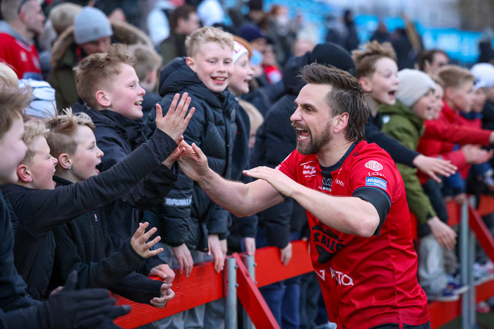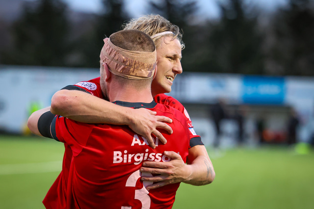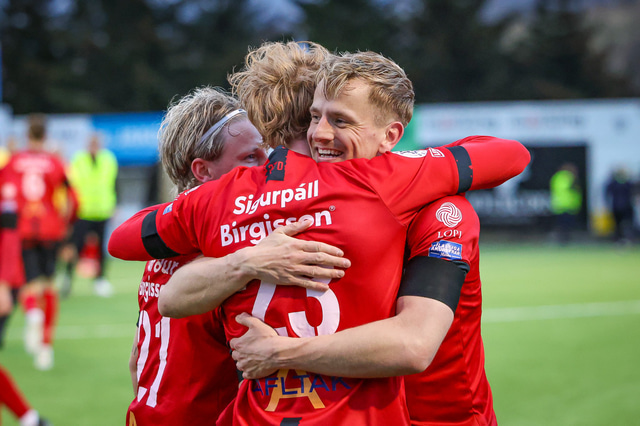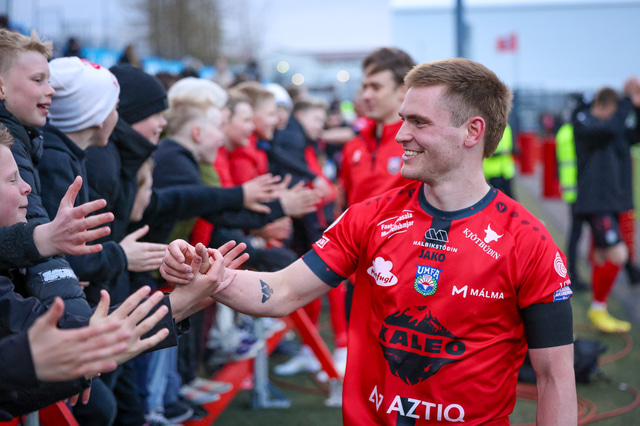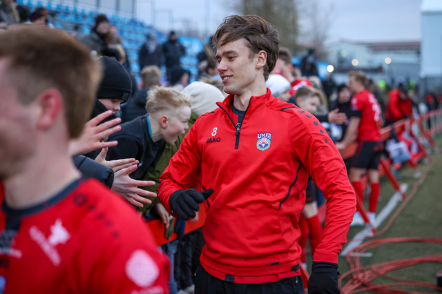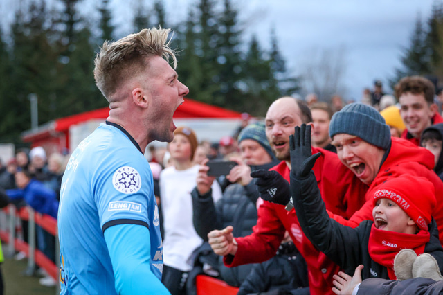 Það var mikil gleði í Mosfellsbæ þegar markið kom og þegar sigurinn var í hús. Það var mikill fjöldi áhorfenda á leiknum og var þéttsetið í stúkunni.