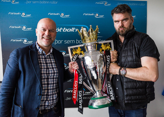 Þeir Eiríkur Þorvarðarson, markmannsþjálfari og stuðningsmaður City, og Sveinn Waage, fyrrum fyndnasti maður Íslands og stuðningsmaður Liverpool, fóru yfir upplifun sína af lokadegi ensku úrvalsdeildarinnar með Sæbirni Steinke.