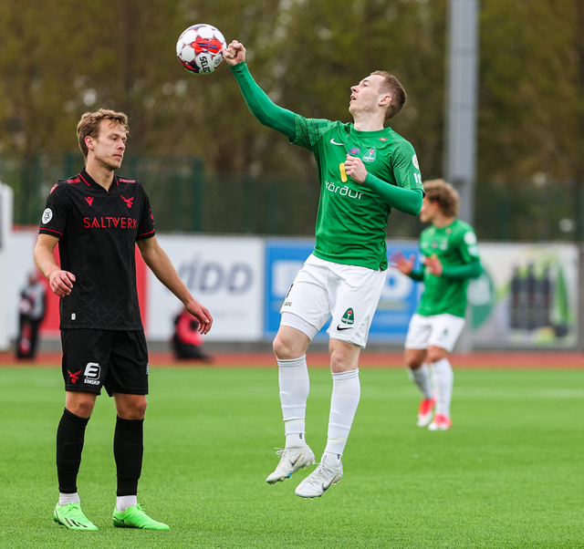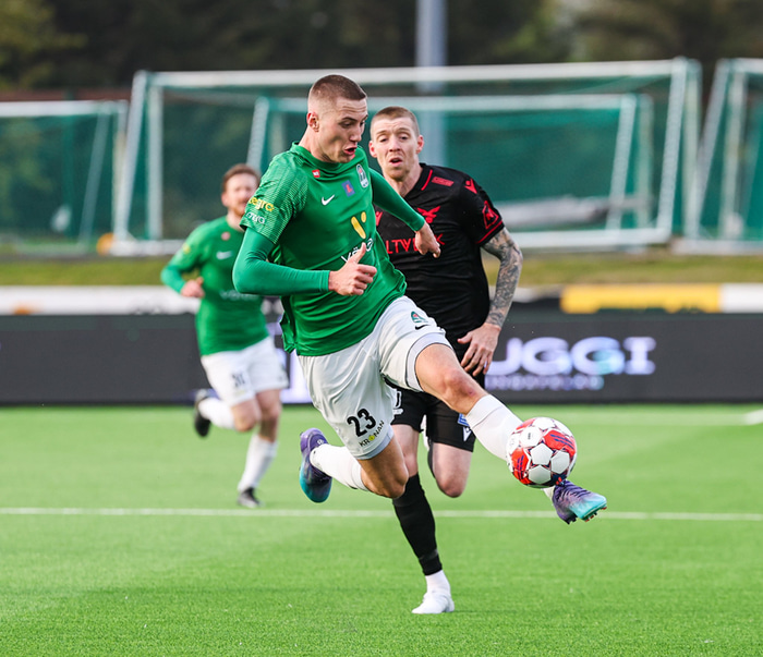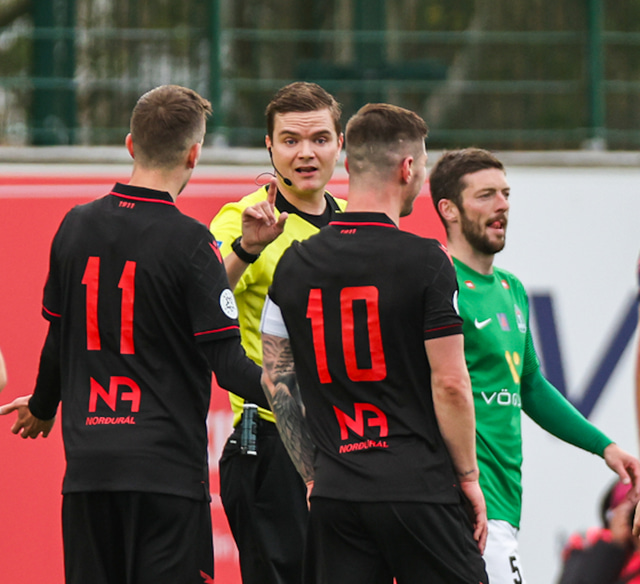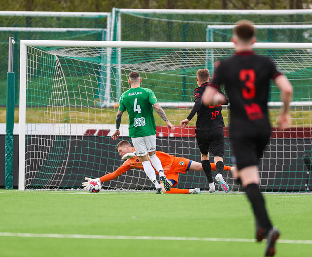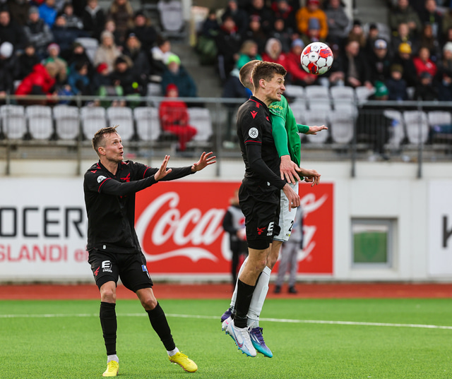 Blikar byrjuðu frábærlega. Viktor Karl Einarsson þrumaði boltanum í samskeytin eftir sendingu frá Jasoni Daða Svanþórssyni en markið var dæmt af vegna rangstöðu.