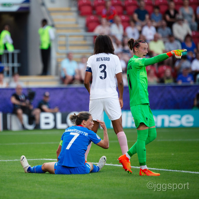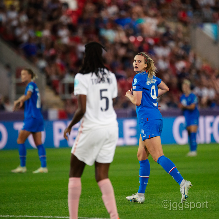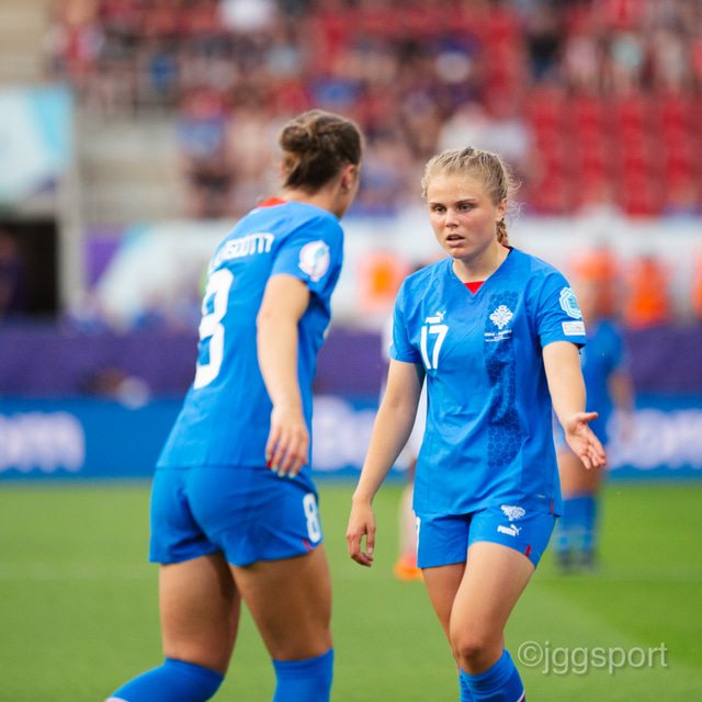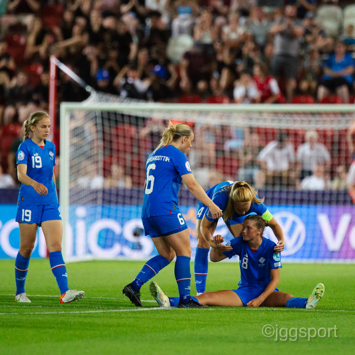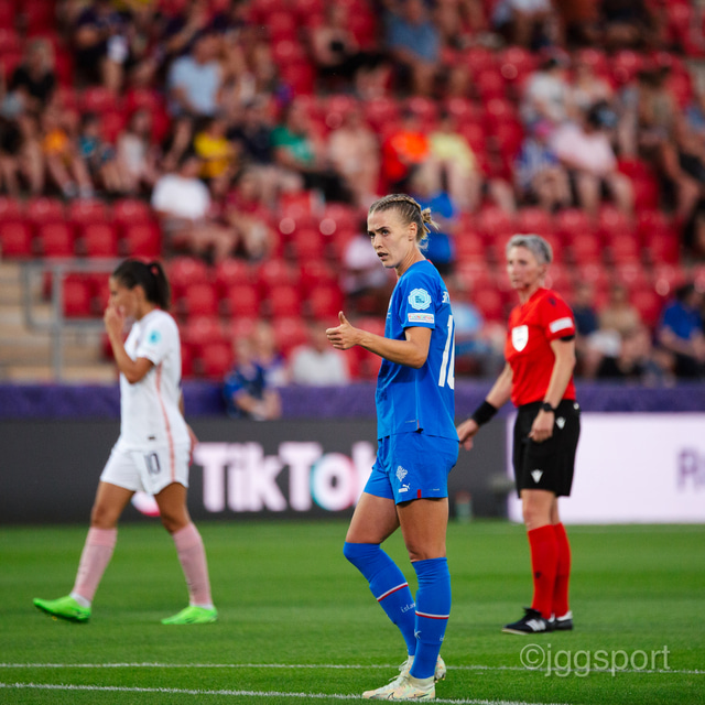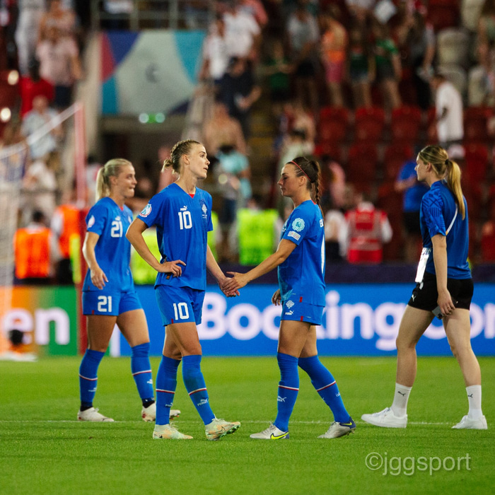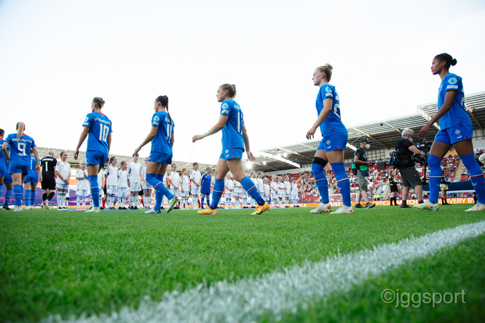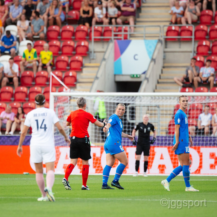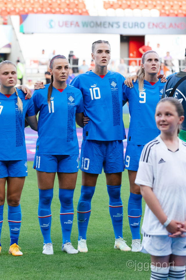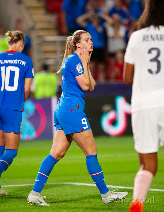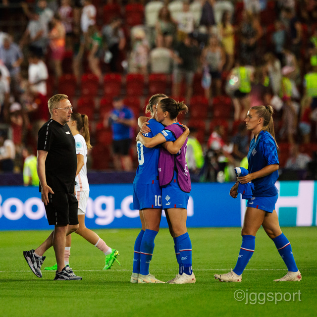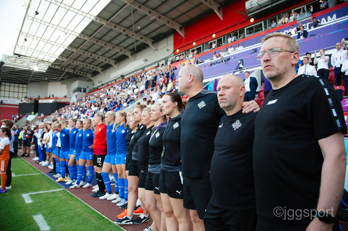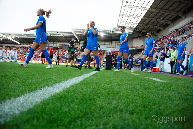 Ísland lék sinn síðasta leik á EM í Englandi í vikunni þegar liðið gerði 1 - 1 jafntefli við Frakka. Jónína Guðbjörg Guðbjartsdóttir tók þessar myndir á leiknum.