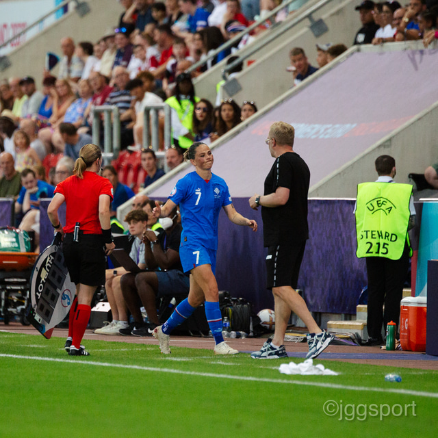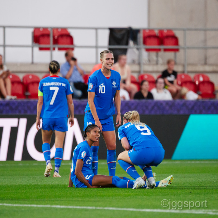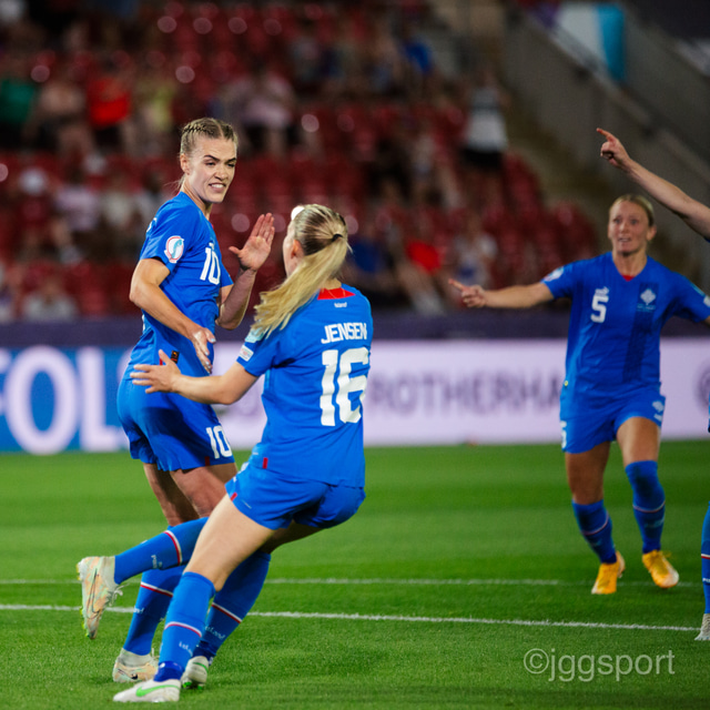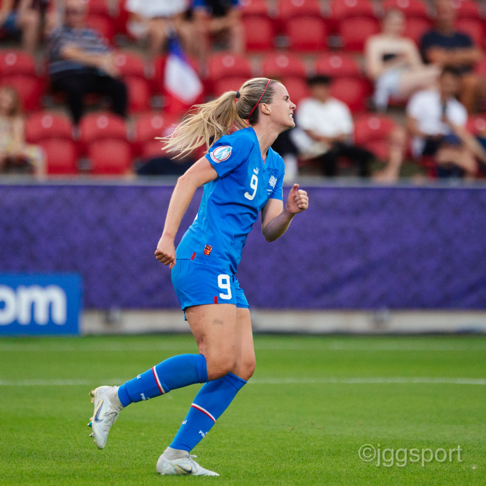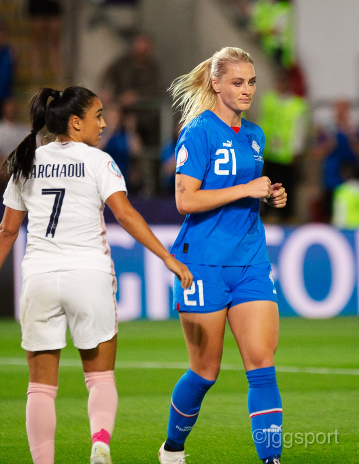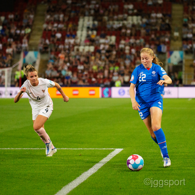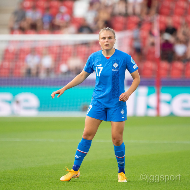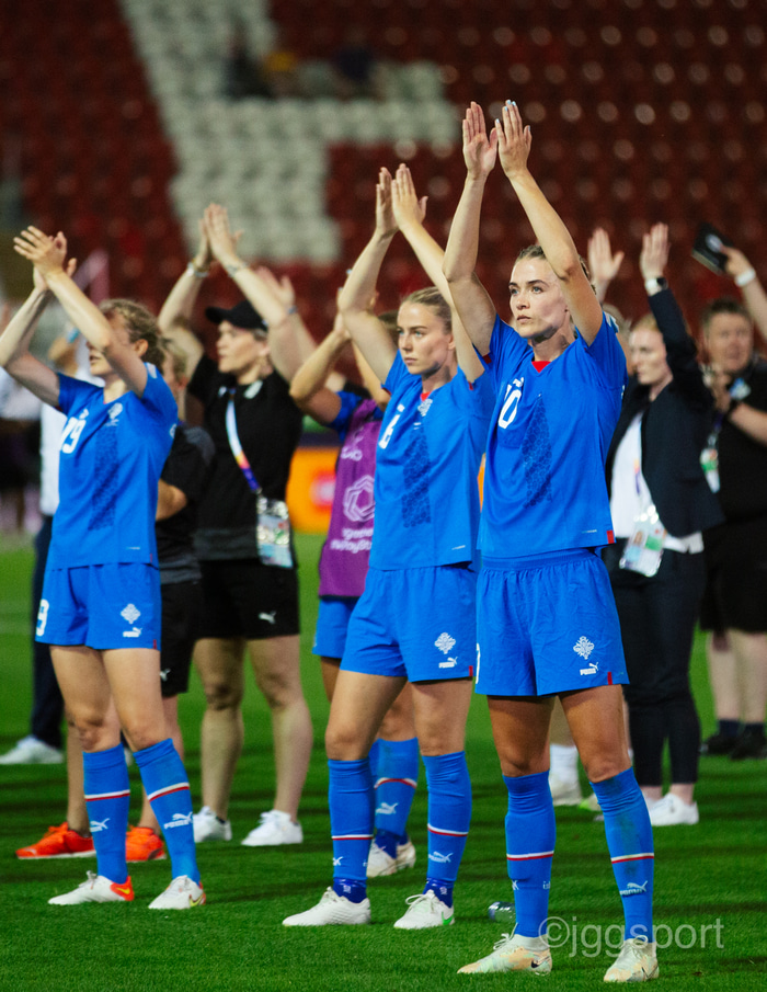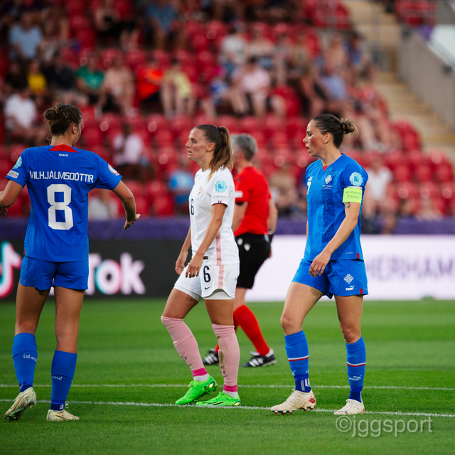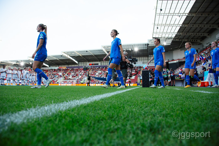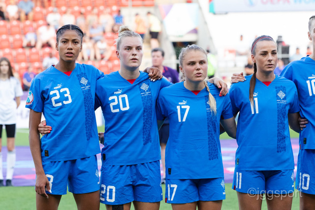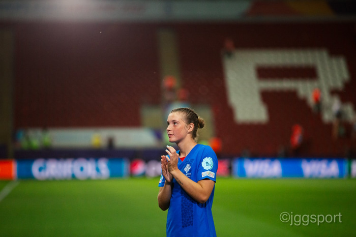 Ísland lék sinn síðasta leik á EM í Englandi í vikunni þegar liðið gerði 1 - 1 jafntefli við Frakka. Jónína Guðbjörg Guðbjartsdóttir tók þessar myndir á leiknum.