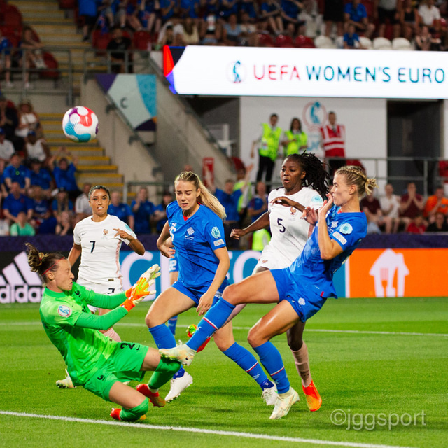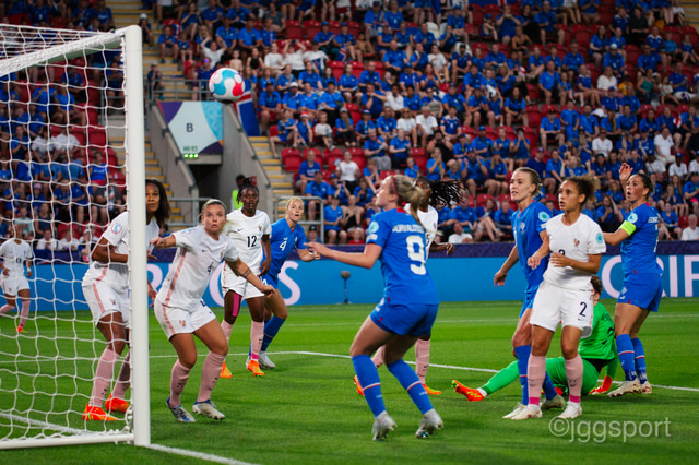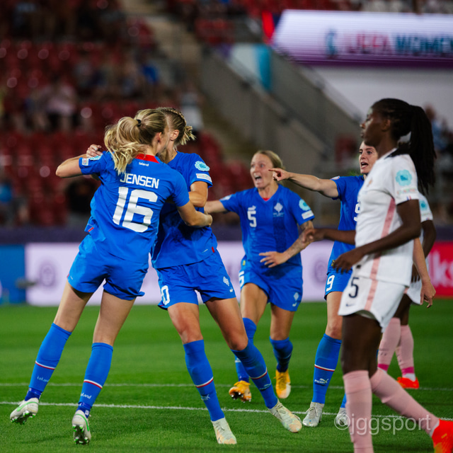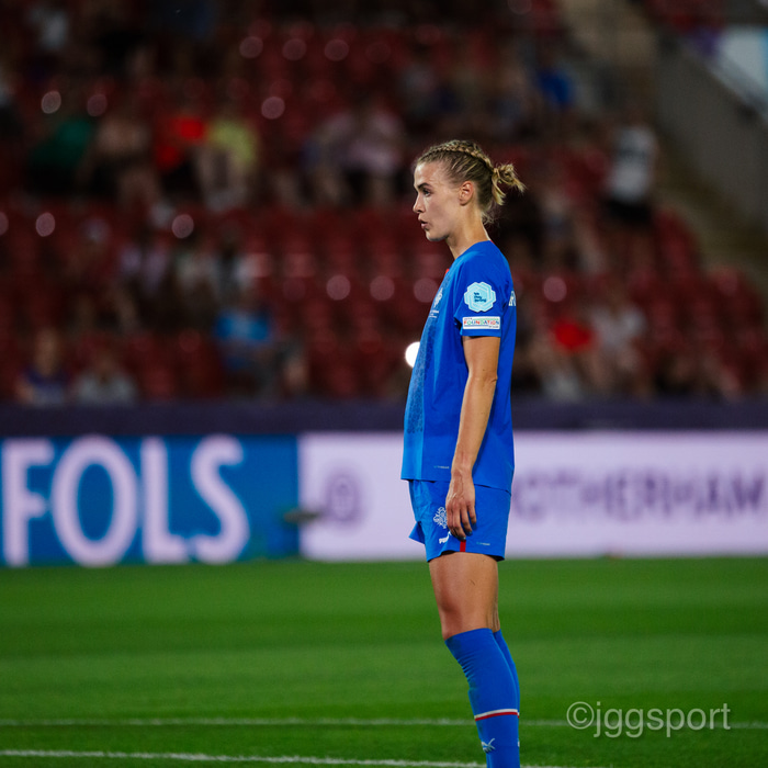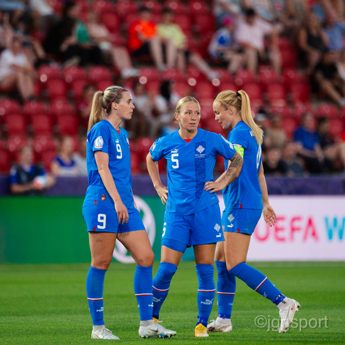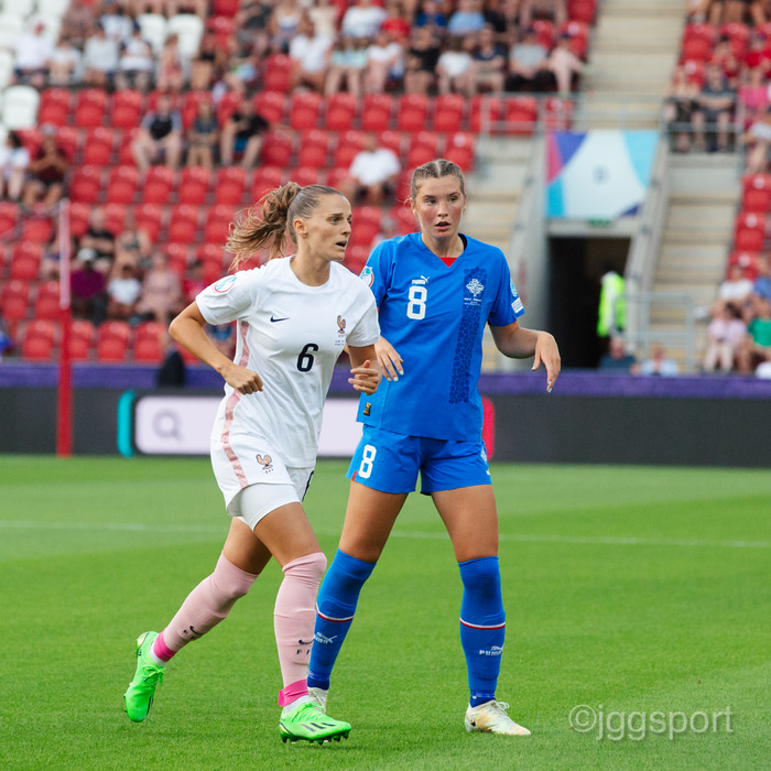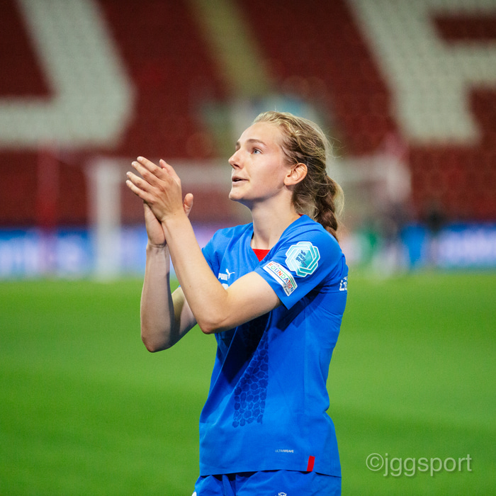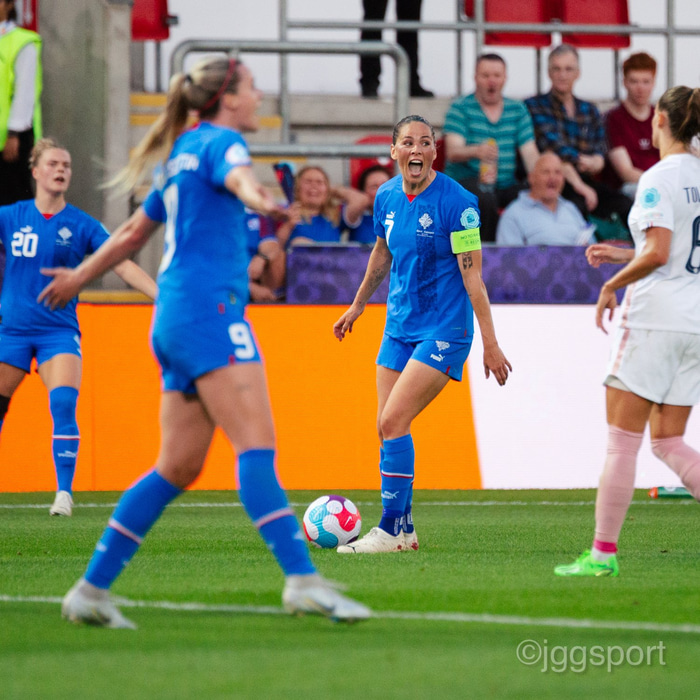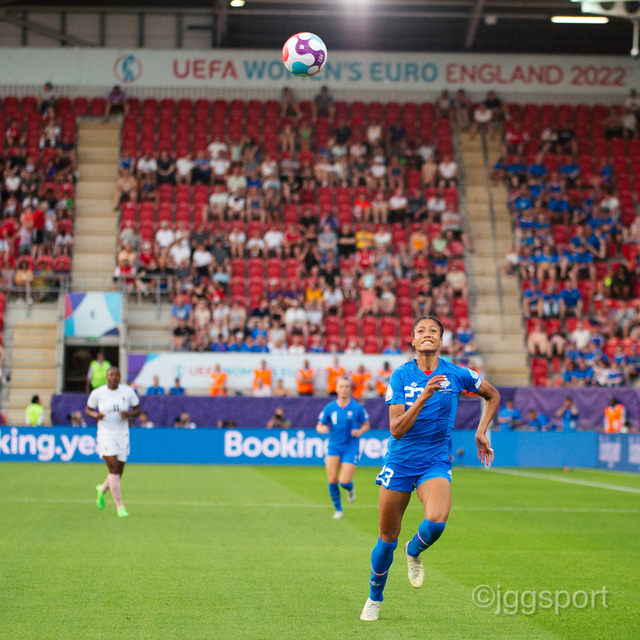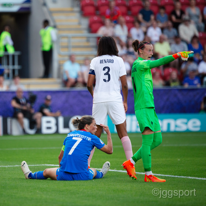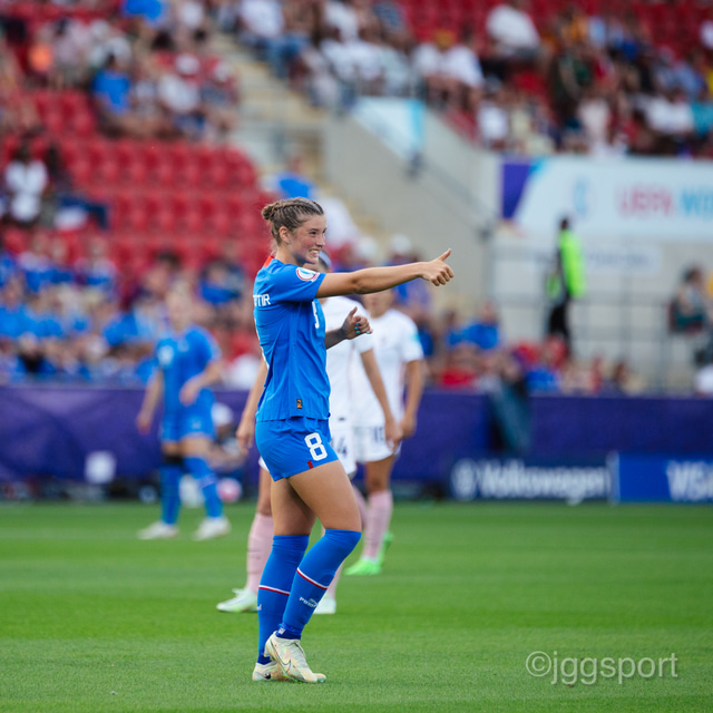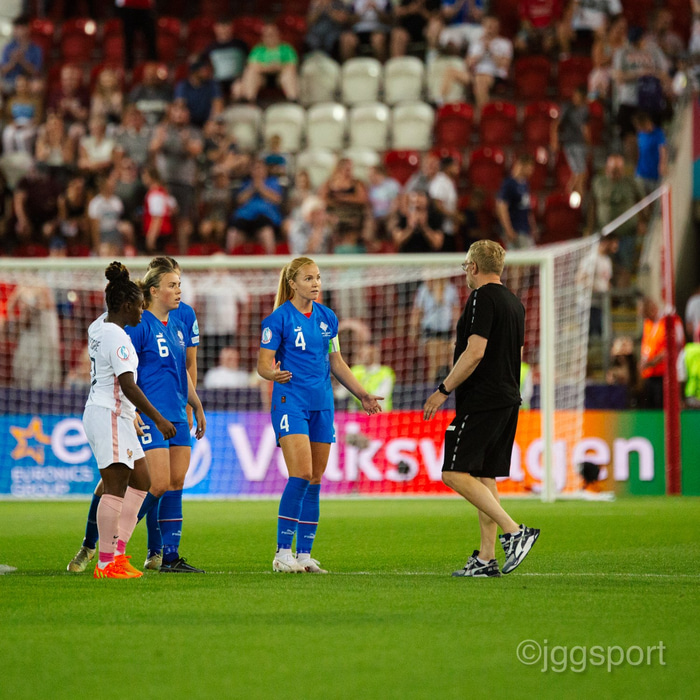 Ísland lék sinn síðasta leik á EM í Englandi í vikunni þegar liðið gerði 1 - 1 jafntefli við Frakka. Jónína Guðbjörg Guðbjartsdóttir tók þessar myndir á leiknum.