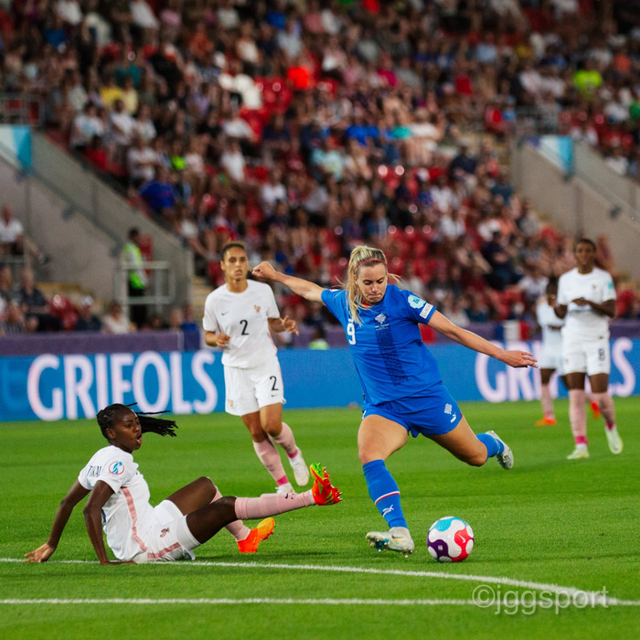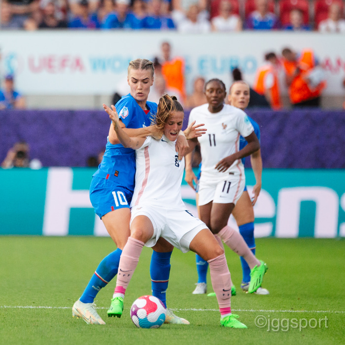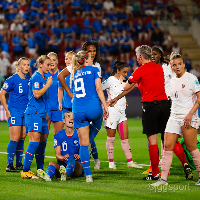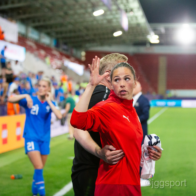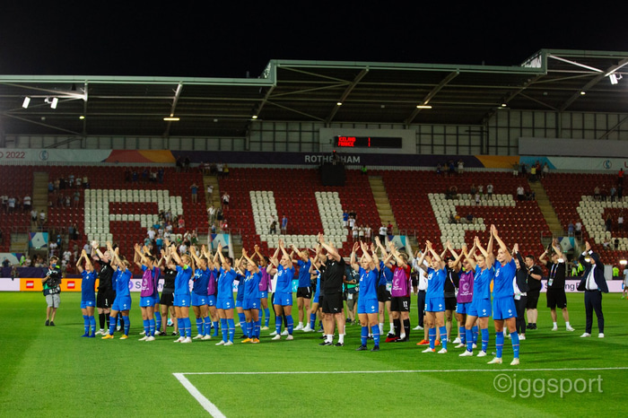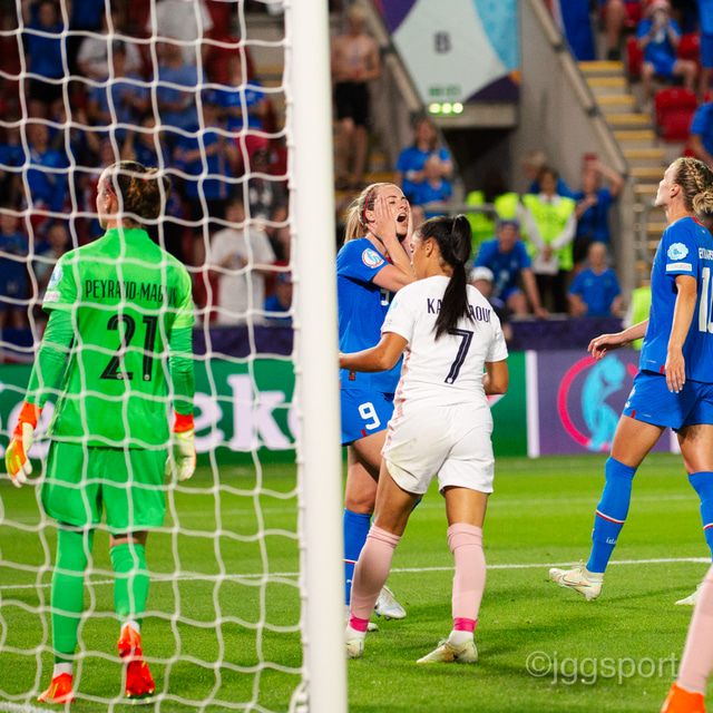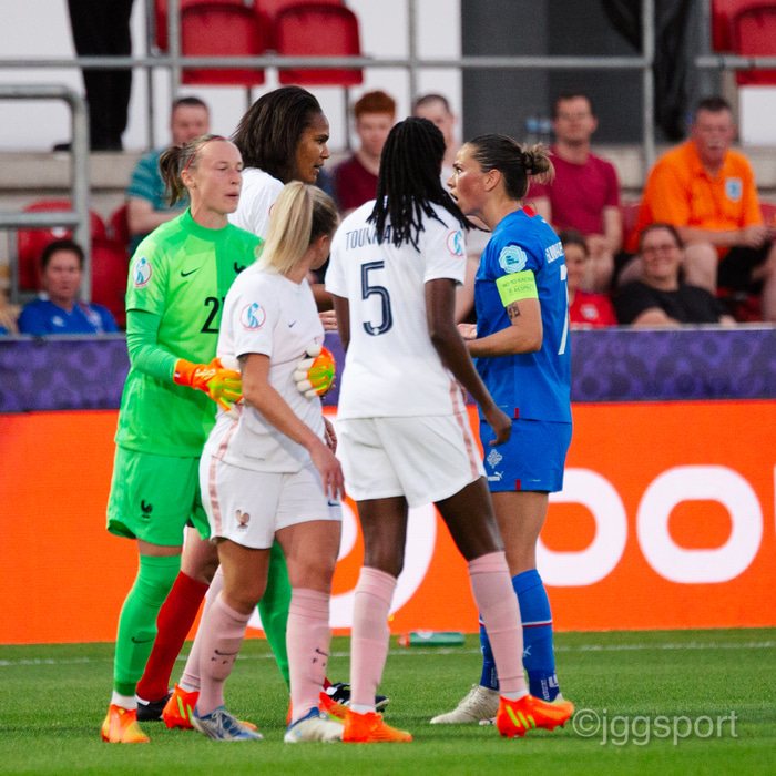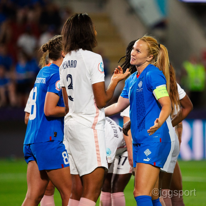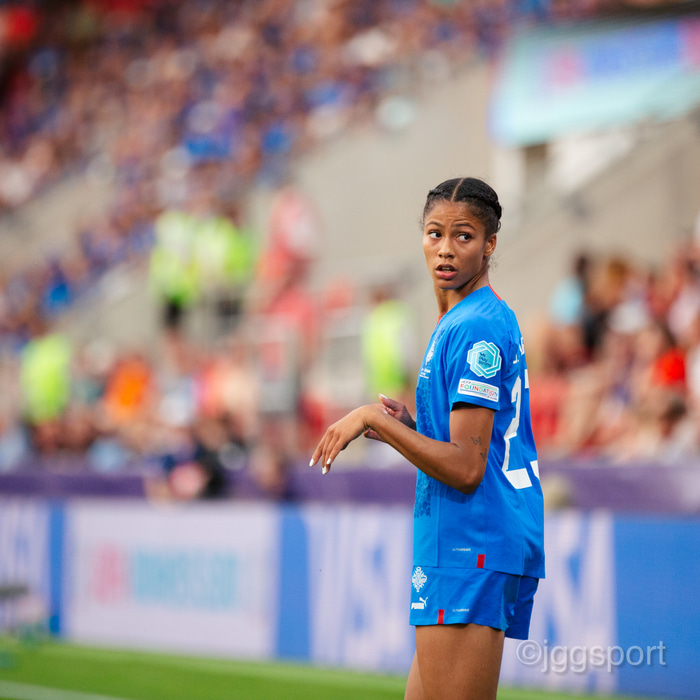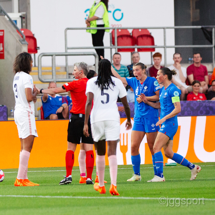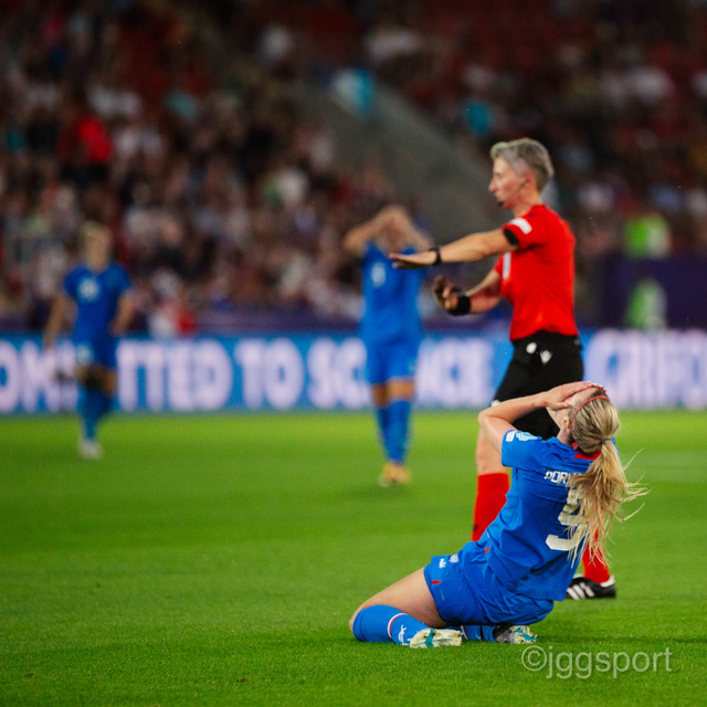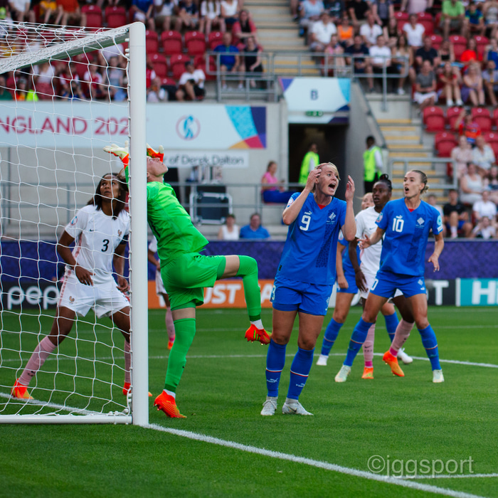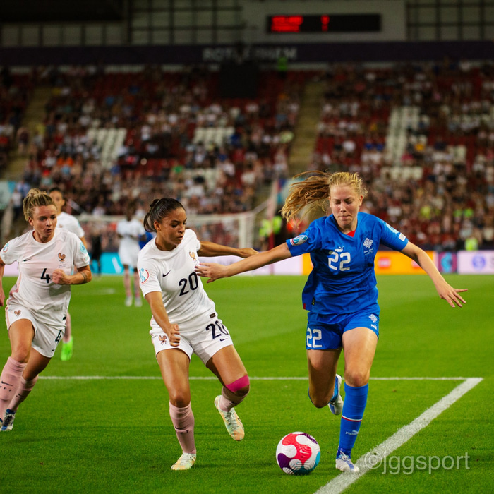 Ísland lék sinn síðasta leik á EM í Englandi í vikunni þegar liðið gerði 1 - 1 jafntefli við Frakka. Jónína Guðbjörg Guðbjartsdóttir tók þessar myndir á leiknum.