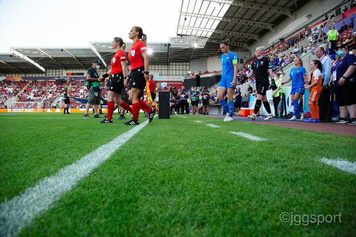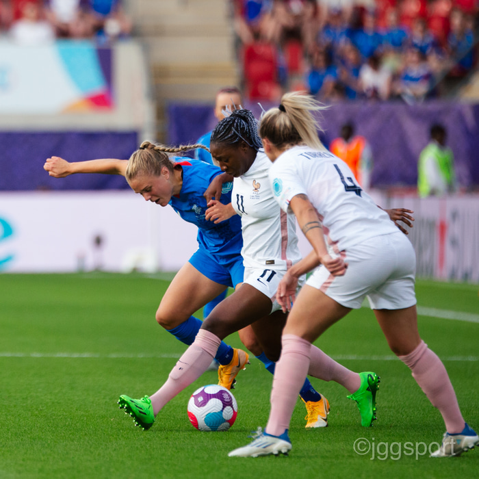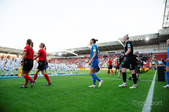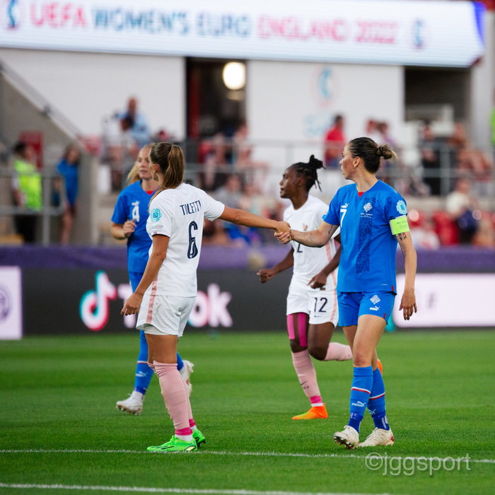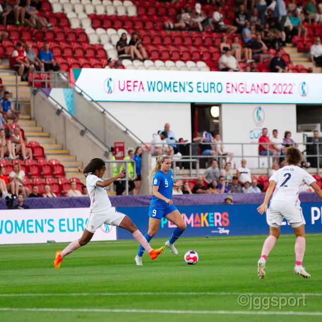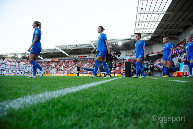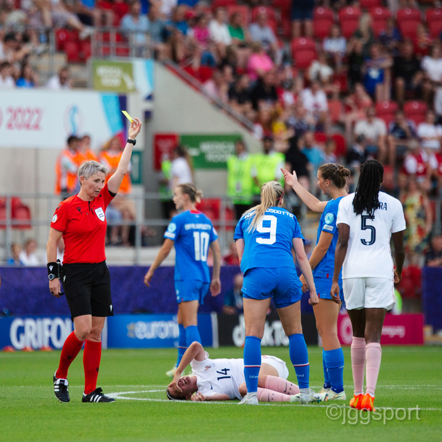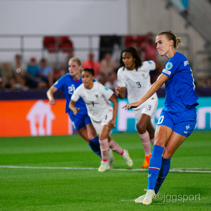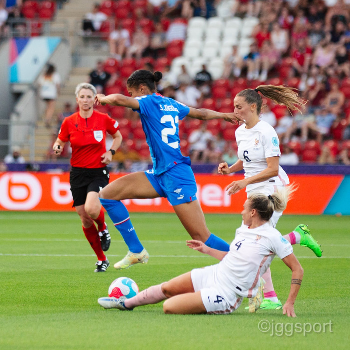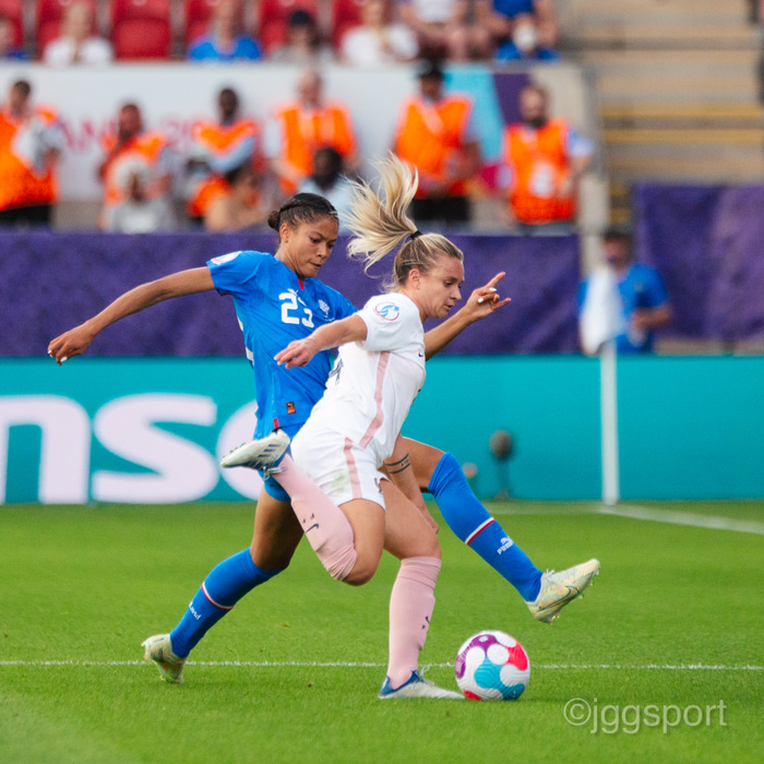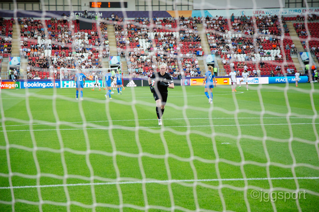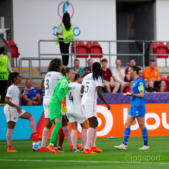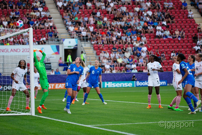 Ísland lék sinn síðasta leik á EM í Englandi í vikunni þegar liðið gerði 1 - 1 jafntefli við Frakka. Jónína Guðbjörg Guðbjartsdóttir tók þessar myndir á leiknum.