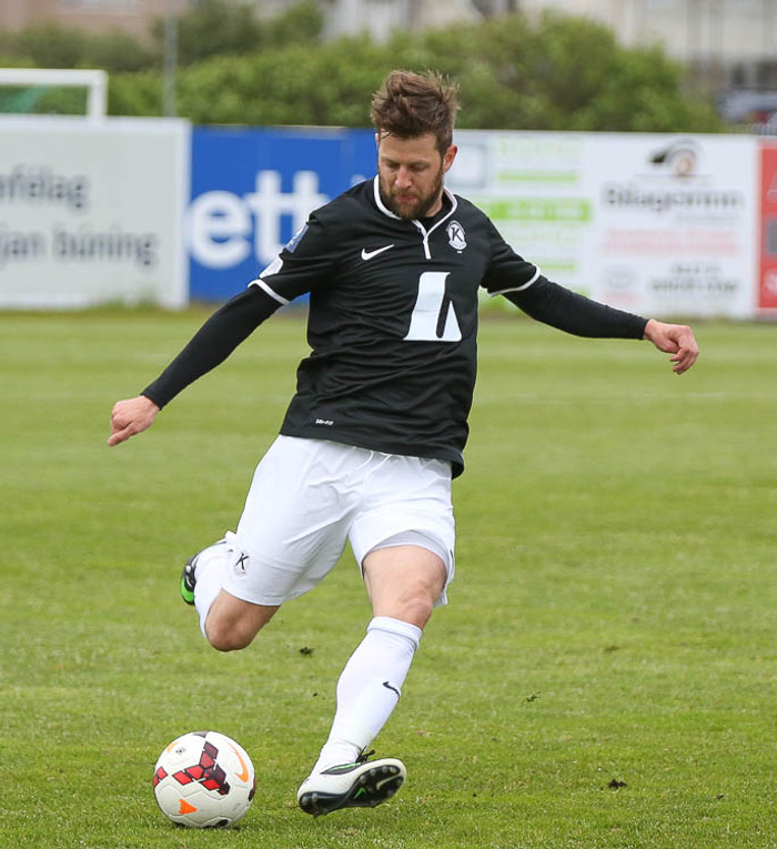 Jóhann Birnir skoraði með skalla eftir aukaspyrnu frá Bojan Stefán Ljubicic snemma leiks en þeir ræddu málin áður en aukaspyrnan var tekin.