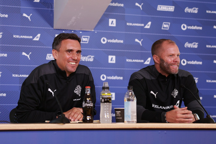 „Andri Lucas er mjög sterkur í nánast öllum hlutum, hann er sterkur, mikill markaskorari, góður að tengja spilið og staðsetningar mjög góðar. Hann er mjög complete sem framherji. Við ræddum málin varðandi þetta val en á endanum er ég bara að aðstoða Arnar. Ég stend með honum þegar kemur að valinu. Sama sagan með Svein Aron þegar hann kom inn í hópinn, þá hálfpartinn stíg ég til hiðar. Arnar þarf að taka þessar ákvarðanir."