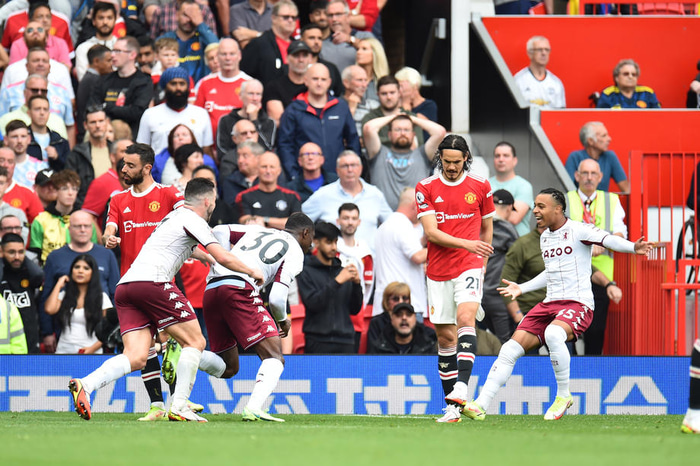 Aston Villa vann óvæntan 1-0 útisigur á Manchester United á Old Trafford.