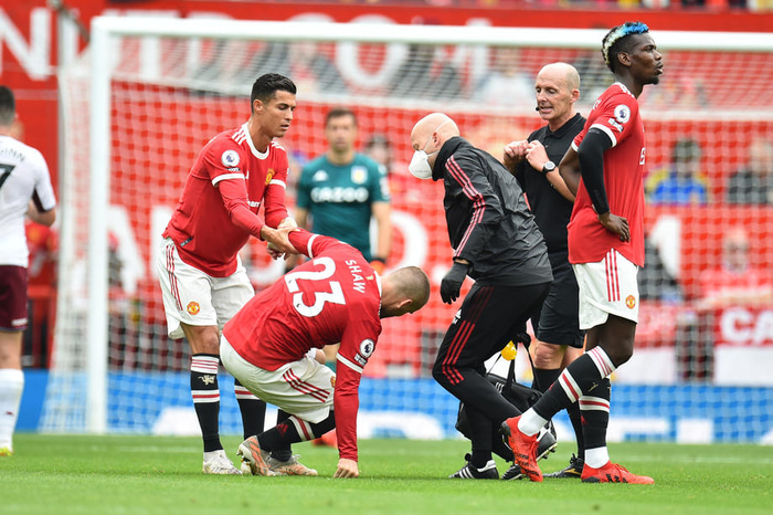 Shaw var í byrjunarliði Manchester United gegn Aston Villa í dag en fór meiddur af velli á 34. mínútu. Hann fékk högg á 26. mínútu en hélt leik áfram áður en hann neyddist til að biðja um skiptingu átta mínútum síðar.