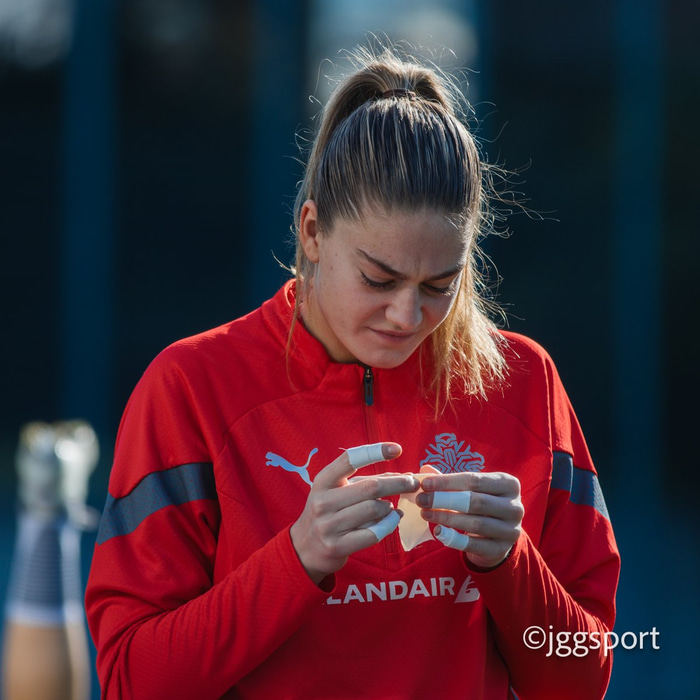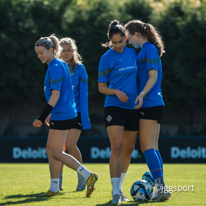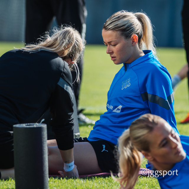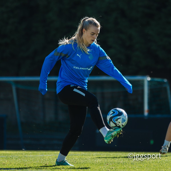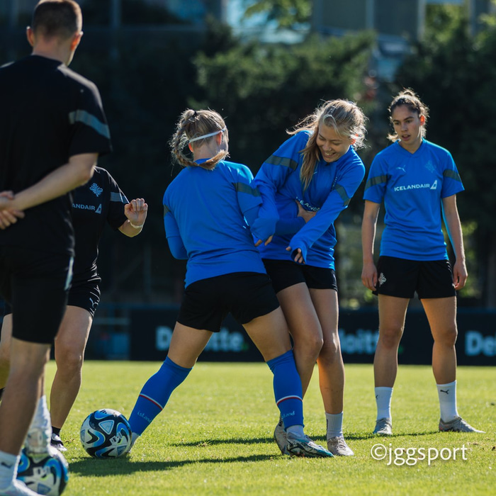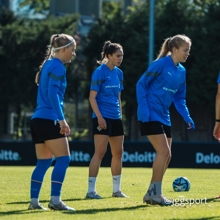 Ísland æfði á æfingasvæði í Dusseldorf í gær en liðið mætir Þýskalandi í Þjóðadeild kvenna í Bochum á morgun. Hér að neðan er myndaveisla frá æfingunni.