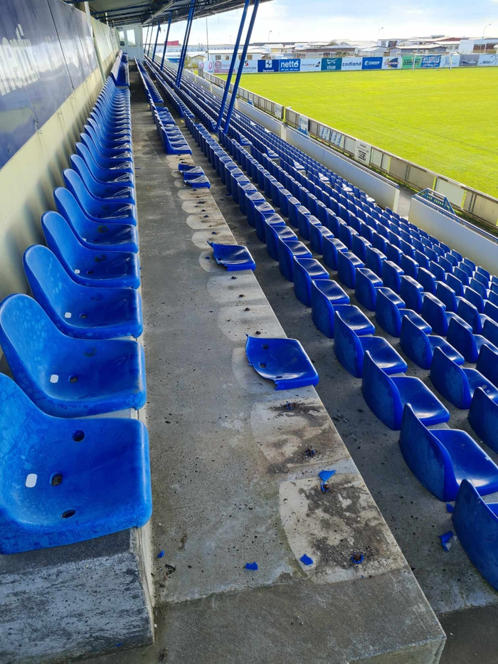 „Þetta er einhver hópur af krökkum eða unglingum sem er að hanga hérna í stúkunni. Sum af þessum sætum voru léleg og hálf brotin, en það er búið að taka c.a. 10 sæti sem ekkert var að og mölbrjóta þau, ásamt því að taka ónýtu sætin og brjóta þau algjörlega. Við viljum komast til botns í þessu máli og finna þá sem eru ábyrgir fyrir þessari eyðileggingu," er haft eftir Orra í færslu knattspyrnudeildar.