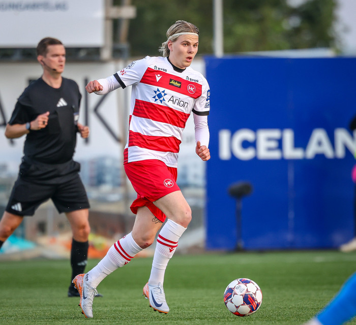 „Birnir leggur hann út á mig og ég þarf að taka hann í fyrsta og klíni honum í skeytin. Fyrsta markið mitt í HK, bara geggjað," sagði Dagur.