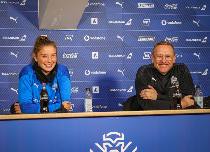 Landsliðsþjálfarinn Þorsteinn Halldórsson var spurður út í stöðu Karólínu Leu Vilhjálmsdóttur á fréttamannafundi í síðustu viku. Karólína var ekki í leikmannahópi Bayern Munchen í síðasta leik fyrir landsliðsverkefnið.