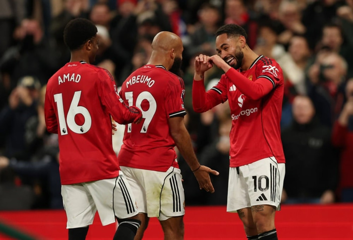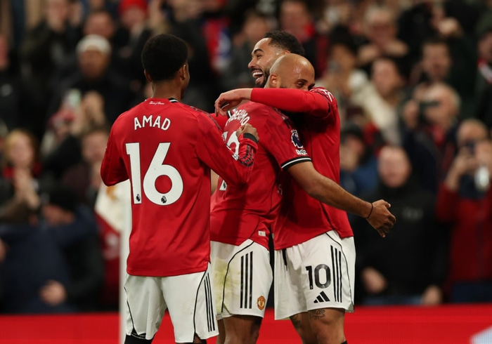 Matheus Cunha kom Man Utd yfir þegar hann skoraði með skoti í fjærhornið rétt fyrir utan vítateiginn eftir sendingu frá Casemiro. Hans fyrsta mark fyrir Man Utd.