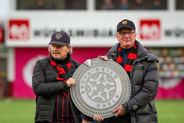 Nú er hafinn leikur Víkings og Vals í lokaumferð Bestu deildarinnar en eftir leik munu Víkingar lyfta Íslandsmeistaraskildinum.
