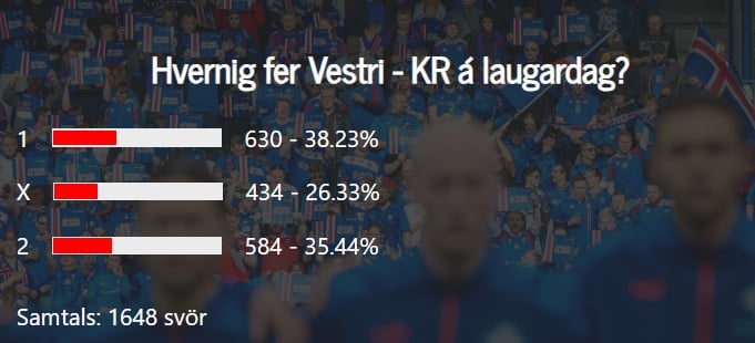 Veðbankar telja um helmingslíkur á því að KR haldi sæti sínu í deildinni. Á Epicbet er stuðullinn 1.93 á sigri KR og stuðullinn á að það verði önnur úrslit í leiknum, jafntefli eða sigur Vestra, er 1.91. Stuðullinn á sigri Vestra er 3,69 og 4,0 á jafntefli.