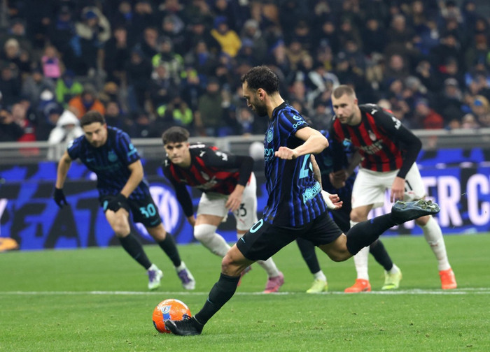 Calhanoglu brenndi af í 1-1 jafntefli gegn Napoli 10. nóvember 2024. Liðin mættust á tólfta leikdegi deildartímabilsins og steig Calhanoglu á punktinn á 74. mínútu, alveg eins og um helgina.
