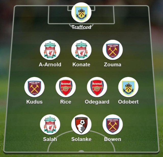 Miðjumaður: Mohammed Kudus (West Ham) - Skoraði seinna mark West Ham í sigrinum gegn Manchester United. Ganverjinn hefur spilað mjög vel fyrir Lundúnaliðið og er ekki í fyrsta sinn í liði umferðarinnar.