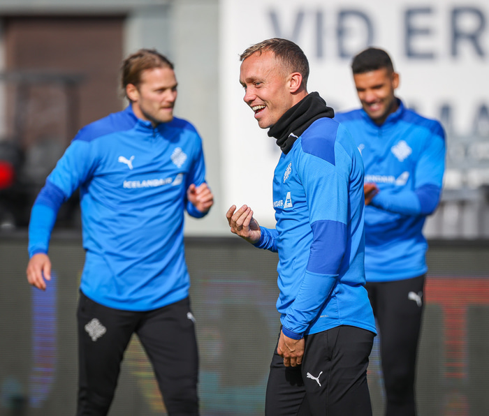 „Ég vaknaði við það að Birkir Bjarnason var að hringja í mig og láta mig vita: 'Gummi, Gummi það er fundur'. Maður fær nánast hjartaáfall, ég hoppa í einhverjar buxur og hleyp að lyftunni. Ég mæti á fundinn, sest niður og segi bara 'sorry, sorry' - er bara að ná andanum. Þá tekur Arnar og neglir í töfluna, ég sver að púlsinn hefur aldrei slegið jafnhratt á ævinni," sagði Gummi.
