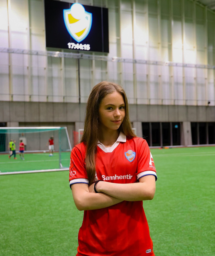 Hún er uppalin hjá Val og er með fjóra leiki að baki í heildina fyrir U17 og U18 landslið Íslands.