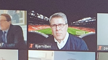„Ég tók þingflokksfundinn frá Old Trafford í dag. Nota næst Samsungvöll Stjörnunnnar sem bakgrunn, á hann líka," segir Bjarni sem er mikill Stjörnumaður og lék með félaginu á sínum tíma.