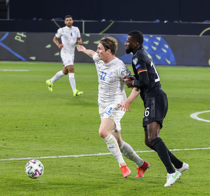 „Þetta var erfiður leikur á móti Þjóðverjum. Þeir eru erfiðir að eiga við. Við fengum tvö mörk á okkur snemma og þetta var bratt eftir það," sagði Jón Daði Böðvarsson, framherji Íslands, við Fótbolta.net eftir 3-0 tapið gegn Þýskalandi í undankeppni HM í gær.