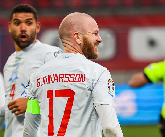 Aron Einar Gunnarsson er kominn með þrennu gegn Liechtenstein og er staðan nú 5-0.