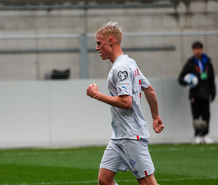 Hákon aftur fyrir vörn Liechtenstein á 37. mínútu og skoraði laglegt mark. Hann skoraði aftur stuttu síðar en markið var dæmt af vegna brots.