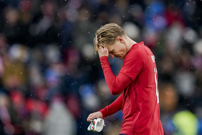 Leiknum lauk með 3-0 sigri spænska liðsins en Noregur var án Erling Haaland samherja Rodri hjá Manchester City.