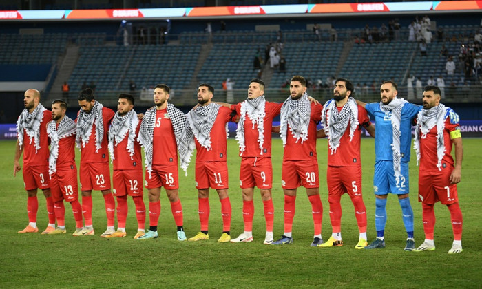 Stríðshrjáðir Palestínumenn spiluðu við Írak í undankeppni Asíuþjóða fyrir HM á næsta ári og voru marki undir stærsta hluta leiksins.