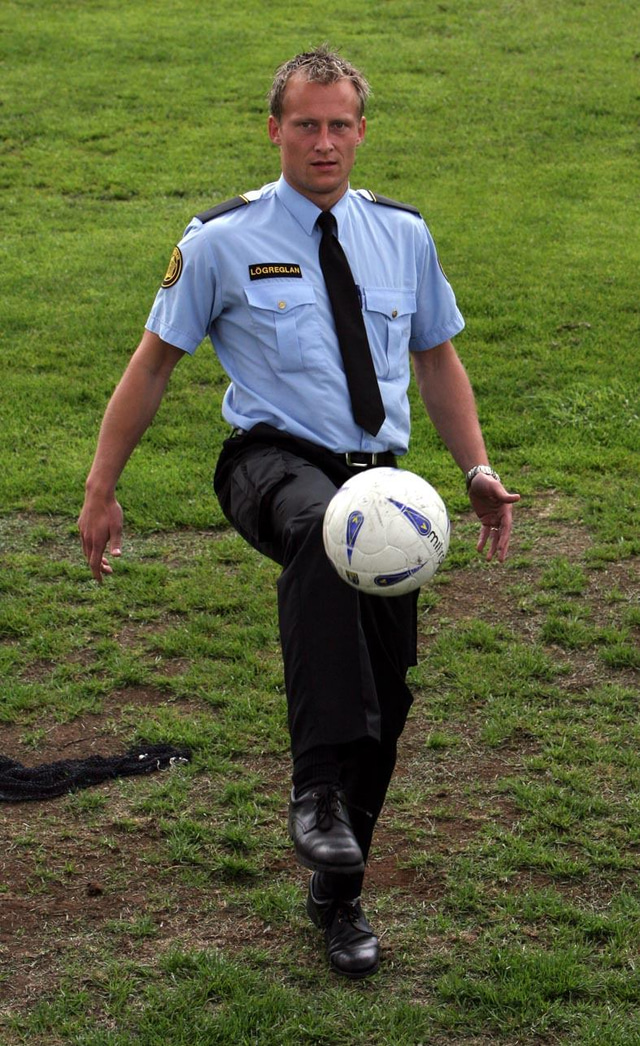 Heiðmar Felixson, í sumarfríinu 2006, þá atvinnumaður í handbolta í Þýskalandi og sumarstarfsmaður lögreglunnar á Akureyri - daginn eftir að hann skoraði tvö mörk í leik með Þór í næst efstu deild Íslandsmótsins.