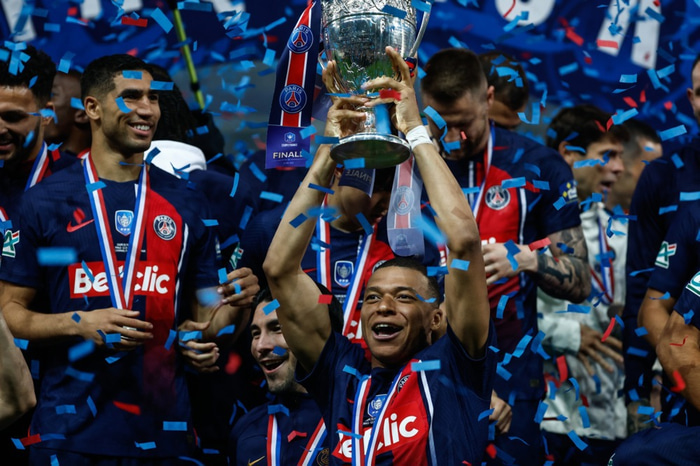 Kylian Mbappe spilaði sinn síðasta leik fyrir PSG í gær þegar liðið vann Lyon í úrslitum franska bikarsins.
