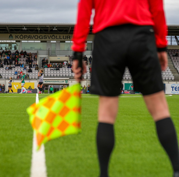 KSÍ hefur fengið staðfest að Almannavarnir hafi aflétt sóttkví aðstoðardómaranna í leik Breiðabliks og KR. Mál dómara leiksins er í skoðun en Bríet Bragadóttir dæmdi leikinn.