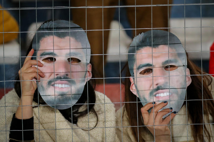 20 þúsund stuðningsmenn Nacional mættu með grímu af Suarez til að auka möguleikann á að fá hann aftur heim