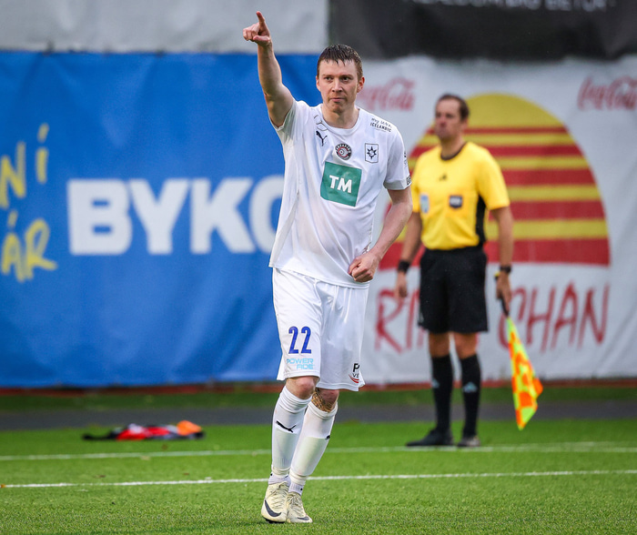 Emil Atlason skoraði bæði mörk Stjörnunnar í 2-1 sigri á eistneska liðinu Paide á Samsungvellinum í gær. Um fyrri leik liðanna var að ræða, liðin mætast aftur næsta fimmtudag og þá verður spilað í Eistlandi.
