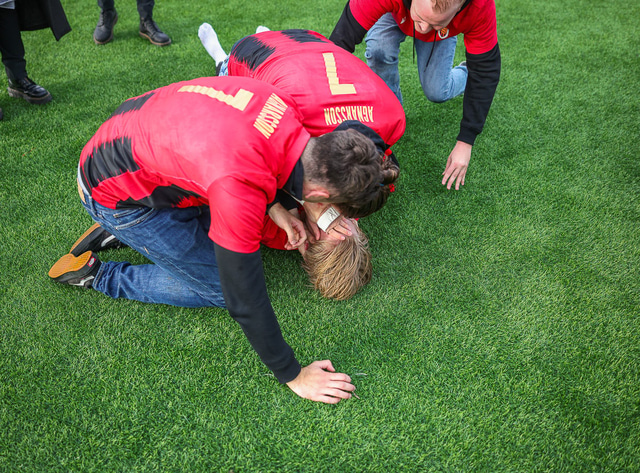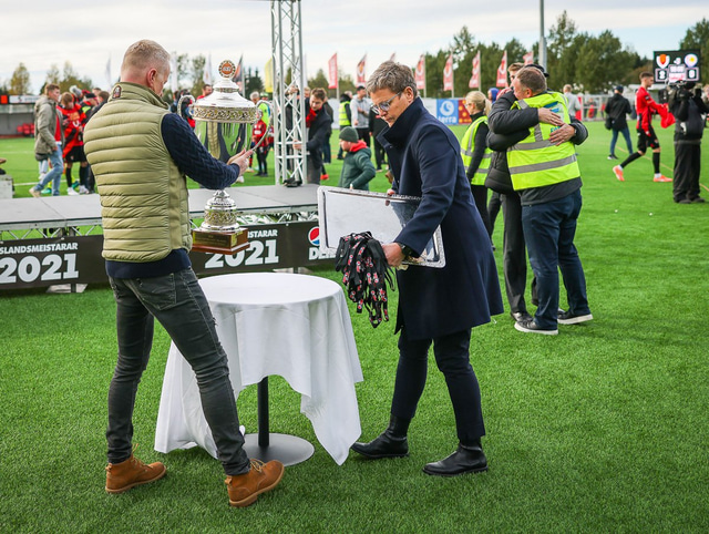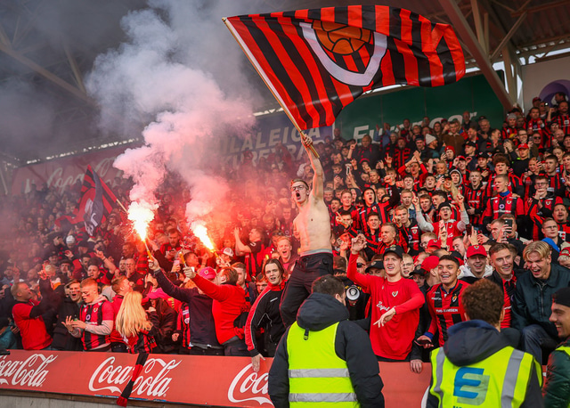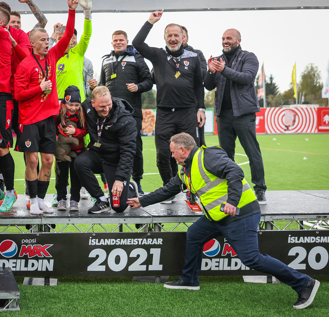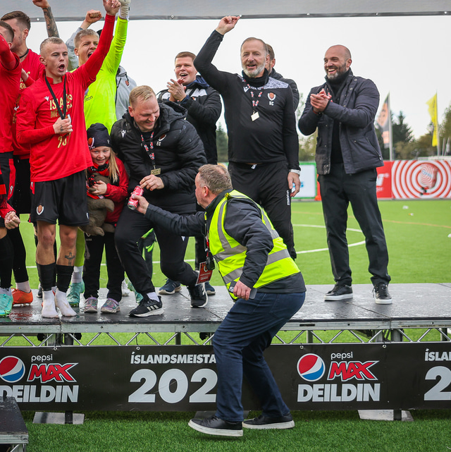 Það var stemmnings og stuð í stúkunni í Víkinni í gærkvöldi þegar Víkingar tryggðu sér Íslandsmeistaratitilinn eftir sigur á Leikni. Hér að neðan er myndaveisla úr leiknum, en þó aðallega úr stúkunni, og svo verðlaunaafhendingunni eftir leik.