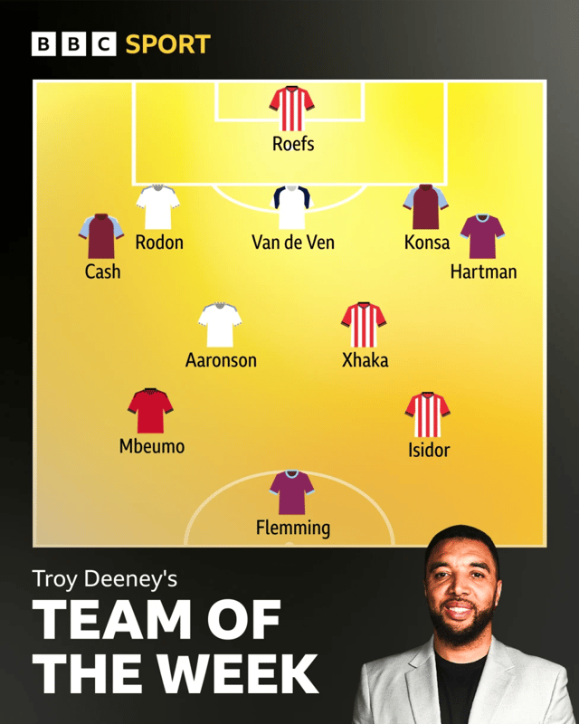 Troy Deeney sérfræðingur BBC sér um að velja lið umferðarinnar í ensku úrvalsdeildinni. Liverpool tapaði fjórða leiknum í röð og Man Utd vann þriðja leikinn í röð. Arsenal styrkti stöðu sína á toppnum og nýliðarnir náðu í sigra.